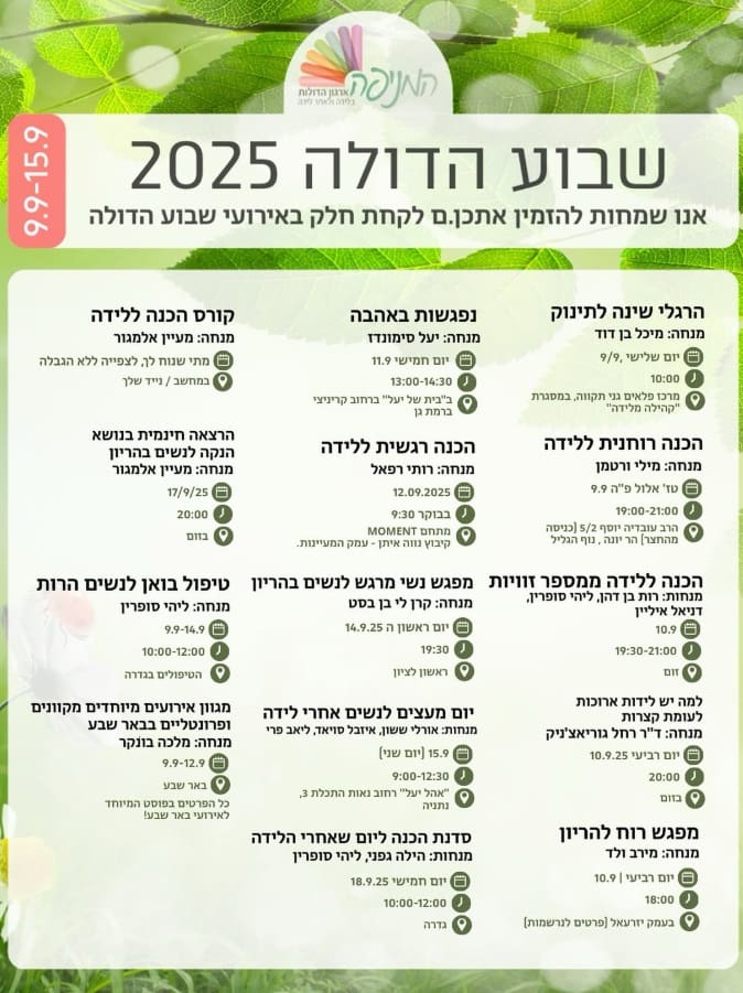 אירועים בהנחיית דולות למען הקהילה 9-15.9.2025